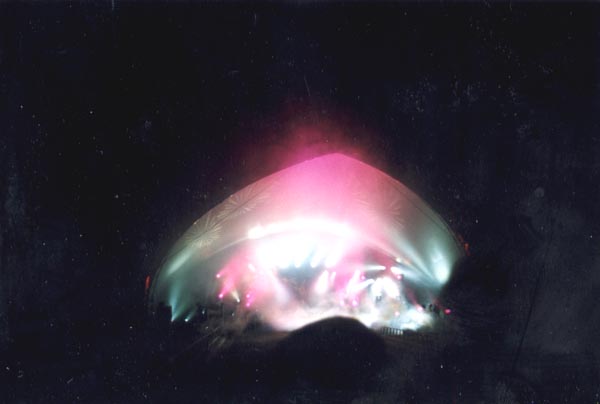 This is the big light show at the end of this year's Trail of Lights display in Austin, Texas. I think it was put on by High End Systems, who do a lot of concert-style lighting effects. It was interesting, but kind of hard to understand with lots of bright strobelights and loud music with a Christmas-ish voiceover. Photo taken December 18, 1997.