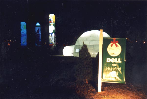 This is an igloo and some totem poles along the Trail of Lights in Austin, Texas. Dell Computer sponsored quite a few of the displays this year. Photo taken December 18, 1997.