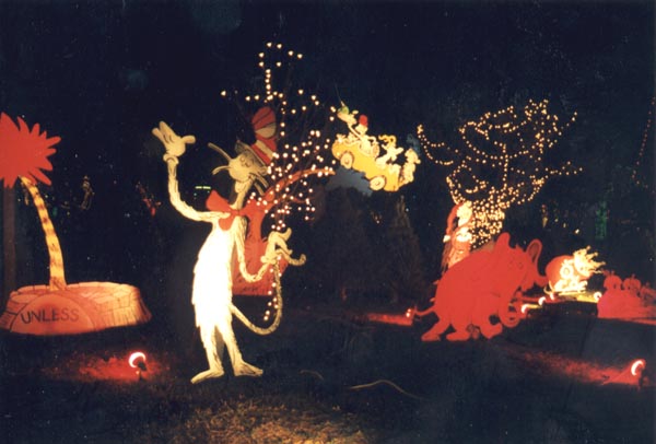 Here is an interesting Dr. Seuss display at the Trail of Lights display in Austin, Texas, featuring The Cat in the Hat and Horton the Elephant! Photo taken December 18, 1997.