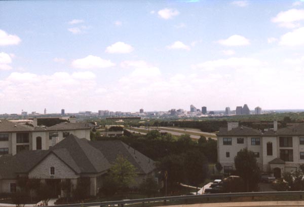 This is a shot of downtown Austin, Texas, taken from the parking lot of Barton Creek Mall in southwest Austin in the summer of 1997.