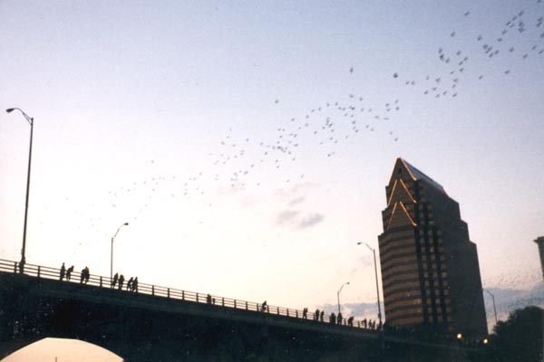 Today's Action Photo is a shot of a bat emergence from under the Congress Avenue Bat Bridge in downtown Austin, Texas. The bats fly out right after sundown, search for insects to eat all night, then return by dawn the next day.