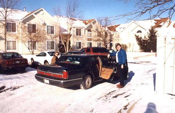 This is my mom and my brother Bryan packing up Tabatha Town Car, my parents' car, on the last day of our Chicago visit in January 1998.