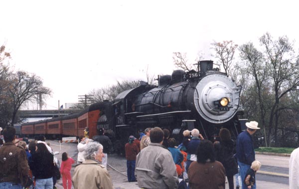 Today's Action Photo is the River City Flyer, a restored steam train that takes people on 90-minute trips through Austin's historic neighborhoods. Here the Flyer is pulling in to the end of the line at Fourth Street and Red River, where it picks up passengers for another round trip. March 13, 1998.