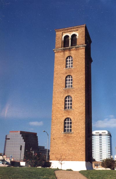 Today's Action Photo is an interesting little tower near Town Lake in downtown Austin, Texas. I think it originally had something to do with fire control, but a plaque on the door says that it's some sort of musical bell tower, but it seems to have been taken out of service quite some time ago. March 1998.