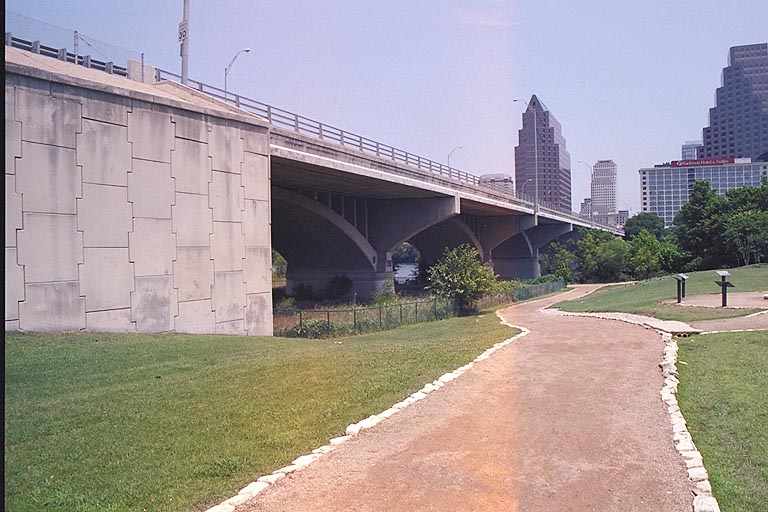 Today's Action Photo is another angle on Austin's famous Bat Bridge spanning Town Lake. This is looking northwest from the bat viewing area by the Austin American-Statesman building. June 1998.
