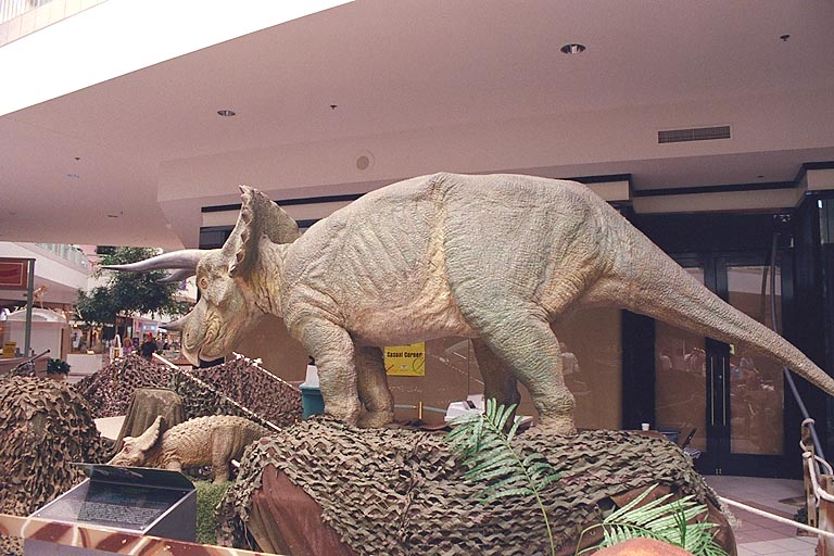 Today's Action Photo is a shot of a mother Triceratops dinosaur and her baby that were on display at Lakeline Mall in Austin, Texas, in May 1998.