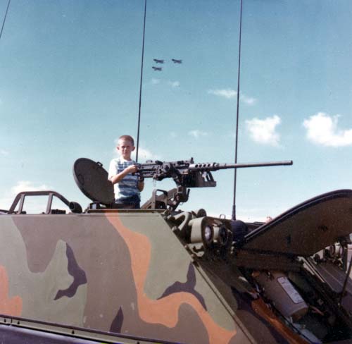 Today's Action Photo is a shot of me on Armed Forces Day in Panama around 1979 or so. Here some jets fly over while I fire off a few rounds from an armored personnel carrier's machine gun!