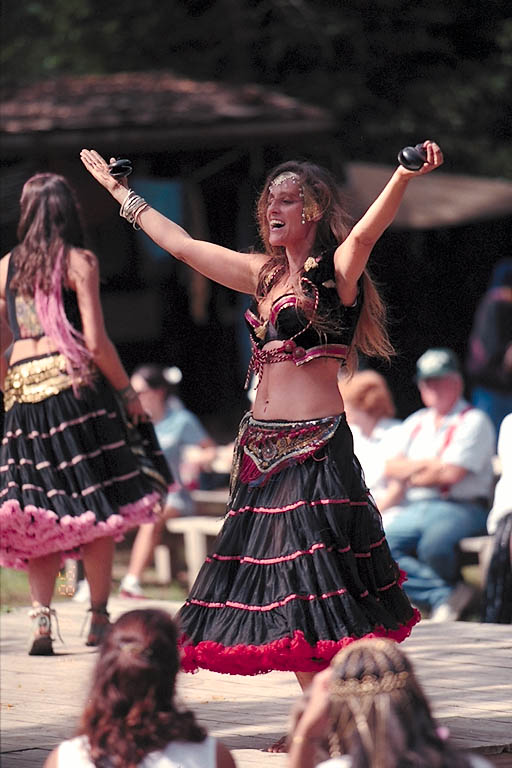 Today's Action Photo is a picture of a group of girls doing sort of a combination of belly dances and aerobic jumping dances at the Texas Renaissance Festival between Plantersville and Magnolia, Texas. Photo taken with a handheld Canon Elan IIe camera, 70-200mm f/2.8L lens with a B+W multicoated UV filter, Fuji Superia 400 film. Photo CD scan done by Wal-Mart at Dunvale and Westheimer in Houston, Texas.