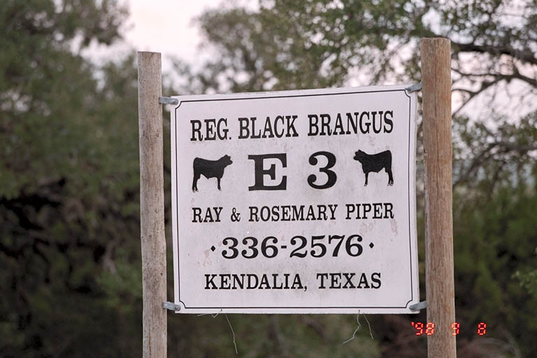 Today's Action Photo is a picture of a cattle breed sign for the "Black Brangus" bovine variety at a ranch along Highway 473 in the Texas Hill Country. Photo taken with a handheld Canon Elan IIe camera, 70-200mm f/2.8L lens, Kodak Royal Gold 100 film.