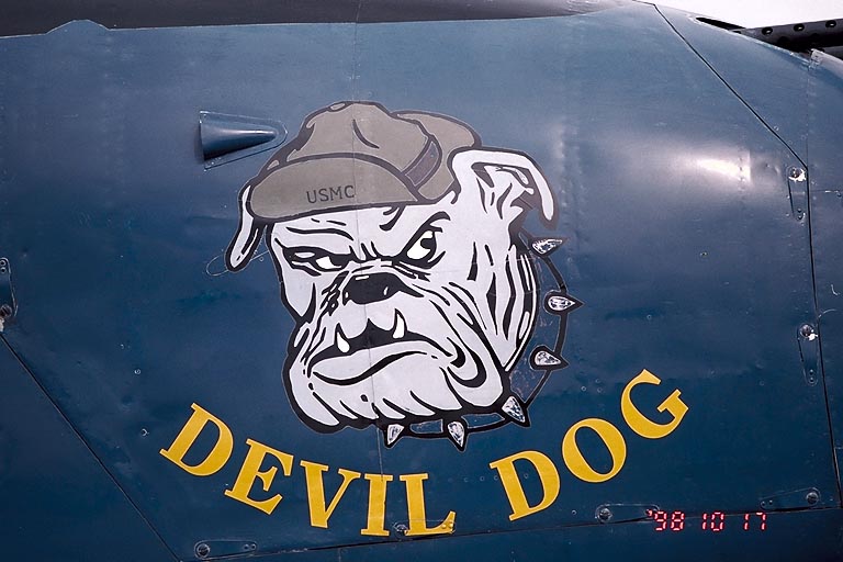 Today's Action Photo is a picture of some "Devil Dog" nose art on a PBJ-1J Mitchell bomber on display at the Wings Over Houston air show. Photo taken with a handheld Canon Elan IIe camera, 70-200mm f/2.8L lens with a B+W multicoated UV filter, Kodak Royal Gold 100 film. Exposure settings were 1/1000 second at f/2.8 with +1/2 stop of exposure compensation.