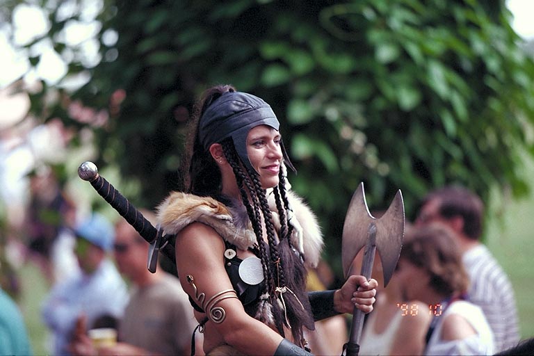 Today's Action Photo is a picture of Kiva Fyrewulf on a horse parading through the grounds of the Texas Renaissance Festival. Photo taken with a handheld Canon Elan IIe camera, 70-200mm f/2.8L lens, Kodak Royal Gold 400 film.