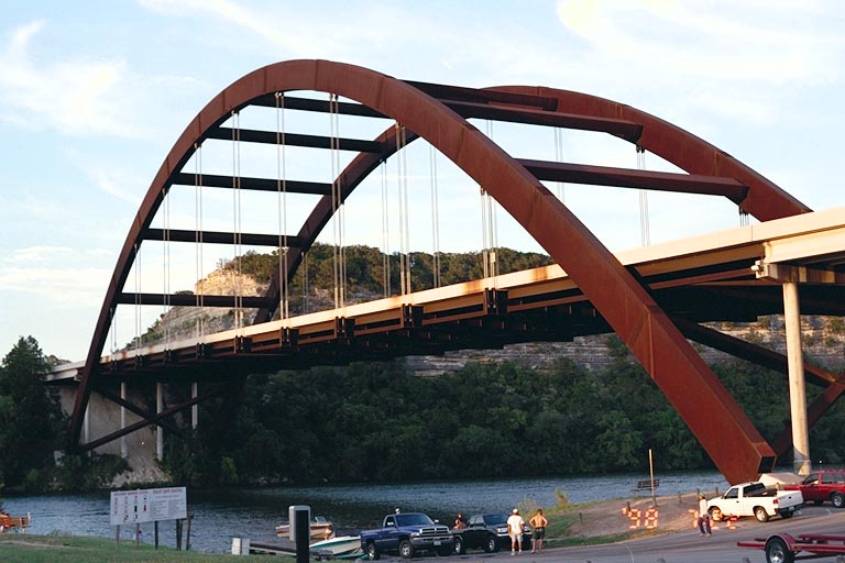 Today's Action Photo is a picture of Austin's famous Pennybacker Bridge, spanning Lake Austin just west of the city. Photo taken with a Canon Elan IIe camera on a Manfrotto Wilderness Tripod, 50mm f/1.8 lens, Kodak Royal Gold 100 film.