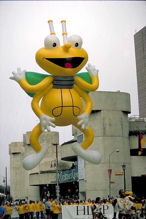 Today's Action Photo is a picture of a big yellow bug that Houston Lighting and Power uses as its mascot in the streets of downtown as part of the Houston Thanksgiving Day parade. Photo taken with a Canon Elan IIe camera on a Manfrotto Wilderness Tripod, 70-200mm f/2.8L lens, Fuji Velvia film. 1/500 second at f/3.5 with +1/2 stop of exposure compensation.