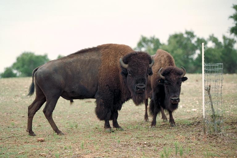 Today's Action Photo is a picture of a pair of buffalo at the Exotic Resort Zoo near Johnson City, Texas. Photo taken with a handheld Canon Elan IIe camera, 70-200mm f/2.8L lens, Fuji HG 100 film.