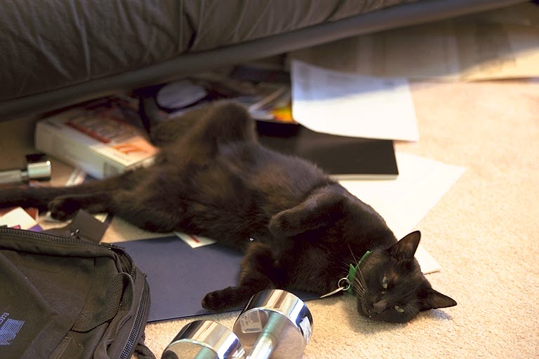 Today's Action Photo is a picture of my cat Bartok looking kind of annoyed as my clicking camera awakes him from a peaceful slumber on my living room floor. Photo taken with a Canon Elan IIe camera on a Manfrotto Wilderness Tripod, 70-200mm f/2.8L lens, Kodak Royal Gold 100 film.