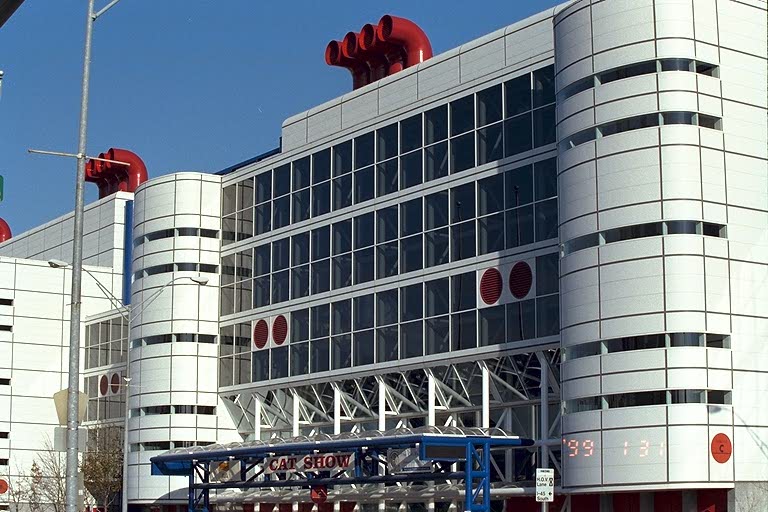 Today's Action Photo is a picture of the George R. Brown Convention Center in downtown Houston, Texas. I was here to see a cat show in January, which was pretty neat. This is an incredibly frustrating building to get to, though, since it can be seen from highways 45 and 10, and yet it can only be reached by taking an obscure exit and then looping back through small downtown streets. Photo taken with a handheld Canon Elan IIe camera, 70-200mm f/2.8L lens with a B+W multicoated UV filter, Kodak Royal Gold 400 film. Photo CD scan done by Advanced Digital Imaging of Fort Collins, Colorado.