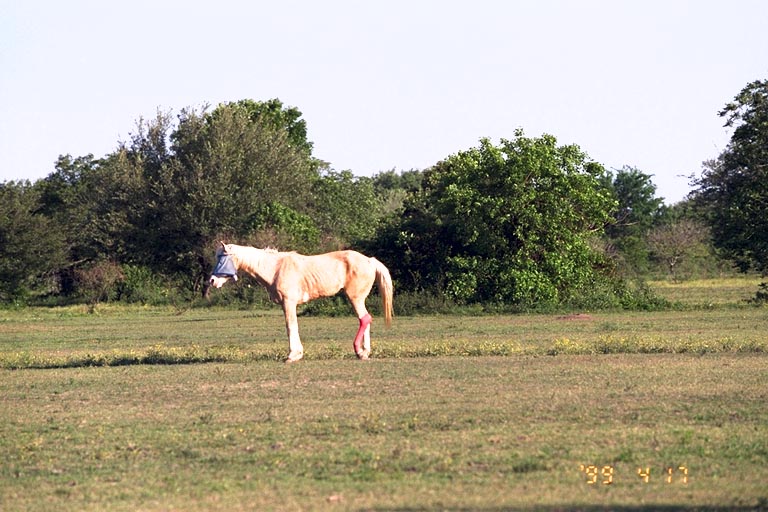 Today's Action Photo is a picture of an injured horse rehabilitating on a small ranch near my apartment in Houston, Texas. Photo taken with a handheld Canon Elan IIe camera, 70-200mm f/2.8L lens, Kodak Gold MAX 800 film. Exposure settings were 1/3000 at f/5.6.