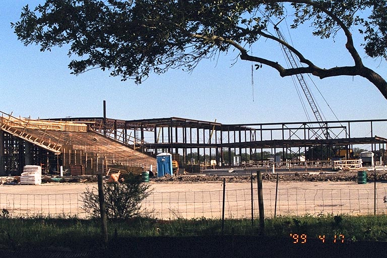 Today's Action Photo is a picture of Westside High School under construction near my apartment in Houston, Texas. Photo taken with a handheld Canon Elan IIe camera, 70-200mm f/2.8L lens, Kodak Gold MAX 800 film. Exposure settings were 1/1500 second at f/13.