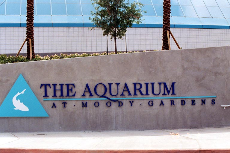 Today's Action Photo is a picture of a sign for the new Aquarium Pyramid at Moody Gardens in Galveston, Texas, with the pyramid itself immediately behind the sign. Photo taken with a handheld Canon Elan IIe camera, 70-200mm f/2.8L lens. Kodak Royal Gold 400 film.