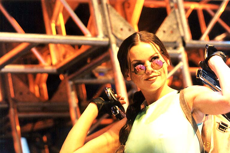 Today's Action Photo is another shot of video game star Lara Croft appearing at E3 1999 in Los Angeles. Photo taken with a handheld Canon Elan IIe camera, 70-200mm f/2.8L lens.
