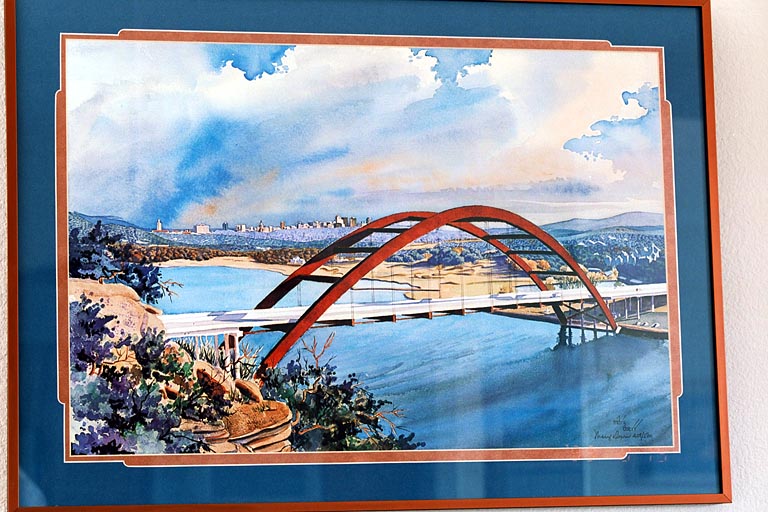 Today's Action Photo is a picture of a painting my parents gave me of the Pennybacker Bridge spanning Lake Austin in west Austin, Texas. Photo taken with a Canon Elan IIe camera on a Manfrotto Wilderness Tripod, 70-200mm f/2.8L lens, Kodak Royal Gold 25 film.