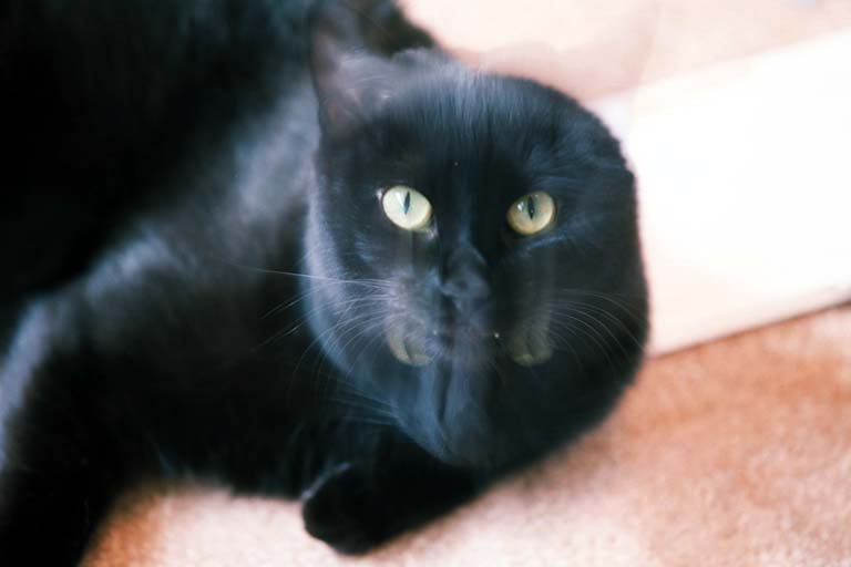 Today's Action Photo is a ruined picture of my cat Bartok demonstrating how hard it is to get a photo of him using slow film, since he looks away from the camera until the shutter clicks, then quickly jerks his head up to look at the camera when he hears the shutter click. Photo taken with a Canon Elan IIe camera on a Manfrotto Wilderness Tripod, 70-200mm f/2.8L lens, Kodak Royal Gold 25 film.