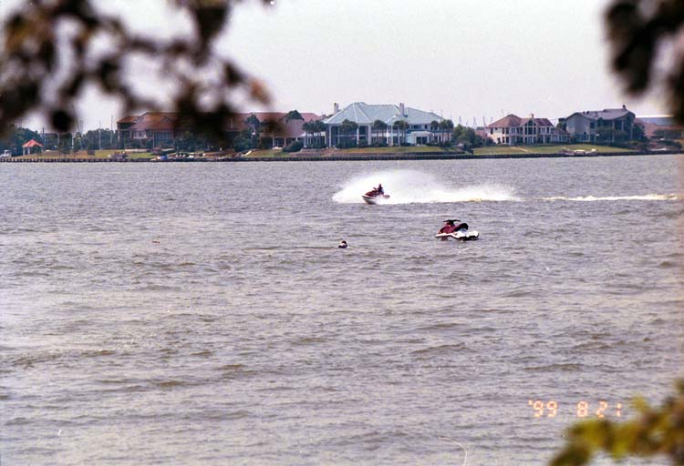 Today's Action Photo is a picture of two members of the TimeGate Studios development team, shortly after a Jetski wipeout on Clear Lake near Houston, Texas! Photo taken with a handheld Canon Elan IIe camera, 70-200mm f/2.8L lens.