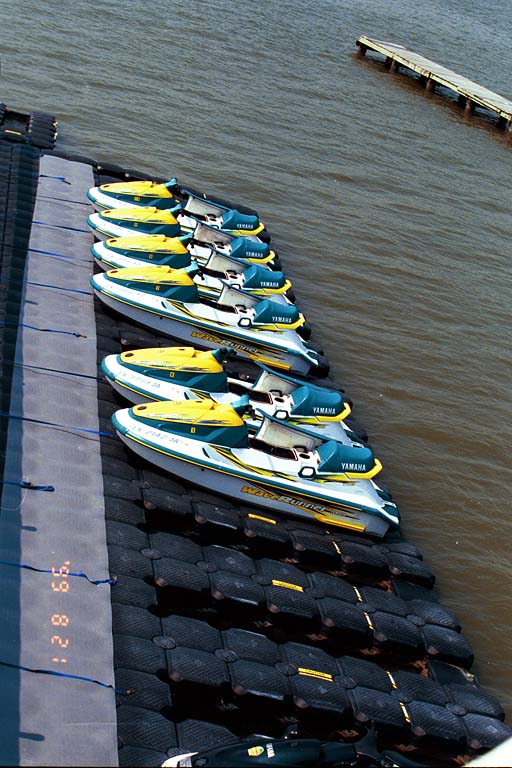 Today's Action Photo is a picture of Jetskis lined up for rental on Clear Lake near Houston, Texas. Photo taken with a handheld Canon Elan IIe camera, 70-200mm f/2.8L lens.