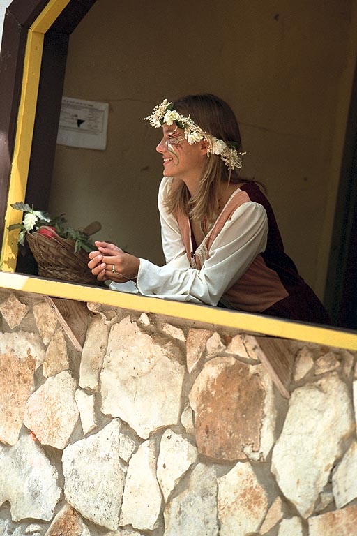 Today's Action Photo is a picture of a pretty merchant girl during a slow moment at the Texas Renaissance Festival! Photo taken with a handheld Elan IIe camera, 70-200mm f/2.8L lens.