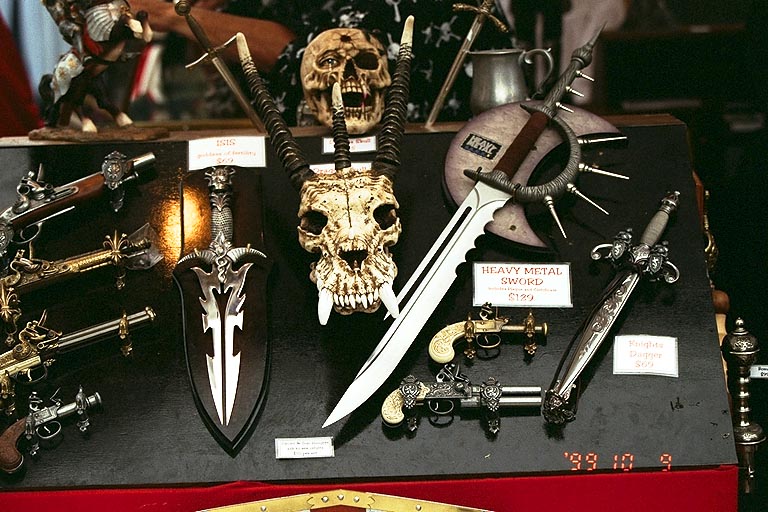 Today's Action Photo is a picture of a display of swords and weaponry for sale at the Texas Renaissance Festival! Photo taken with a handheld Canon Elan IIe camera, 70-200mm f/2.8L lens.