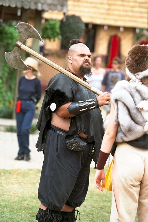 January 20, 2002: I've been informed this character's name is Koolagh Stormwolf, who appears with the Cromwell's Angels roaming barbarian group at the festival!