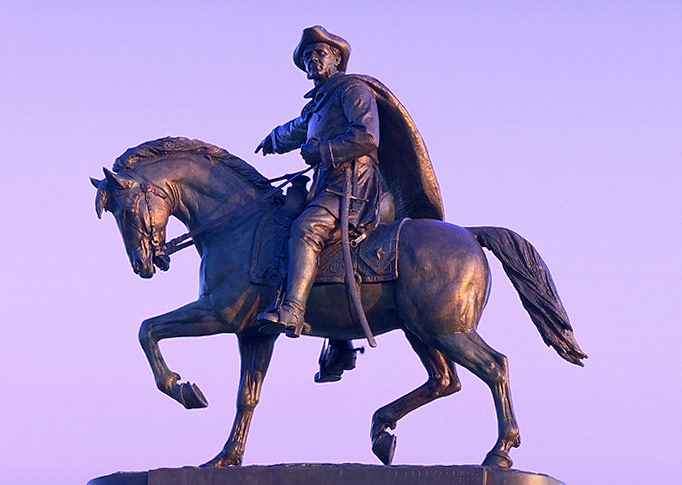 Today's Action Photo is a picture of a statue of Sam Houston, atop a stone gateway pedestal in the museum district of Houston, Texas! Photo taken with a Canon Elan IIe camera and a 70-200mm f/2.8L lens on a Manfrotto 3221W tripod, Fuji Velvia film.
