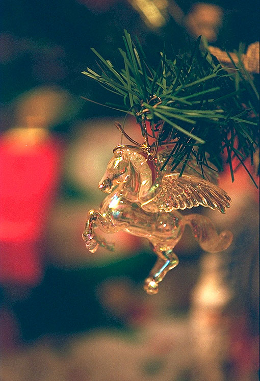 Today's Action Photo is a picture of a crystal horse Christmas ornament on my parents 2000 Christmas tree! Photo taken with a Canon Elan IIe camera and a 70-200mm f/2.8L lens on a Manfrotto 3221W tripod.
