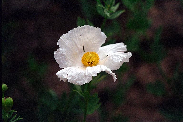 Today's Action Photo is a picture of a white and yellow flower growing in a garden in Westwood Village, California! Photo taken with a Canon Elan IIe camera and a 70-200mm f/2.8L lens.