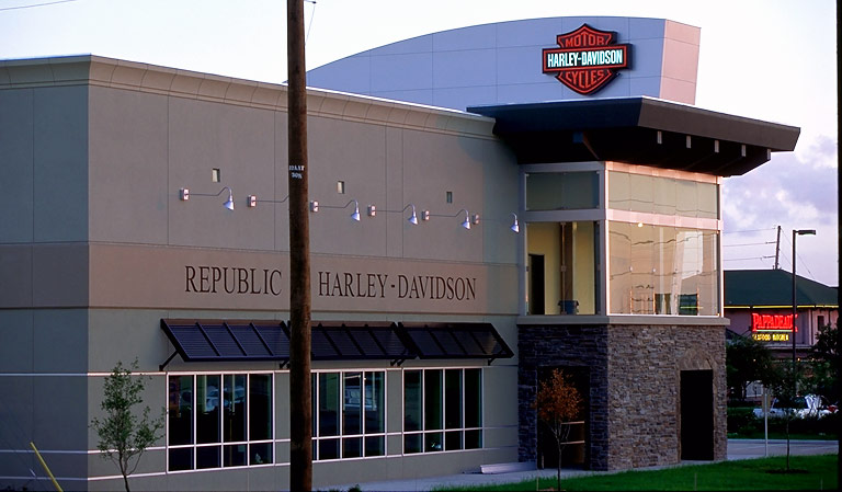 Today's Action Photo is a picture of Republic Harley-Davidson, a brand new motorcycle dealership that just opened a little bit north of where I work in Houston, Texas! Photo taken with a Canon Elan IIe camera on a Manfrotto 3221W tripod.