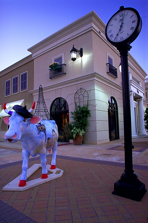 Today's Action Photo is a picture of a Houston Cow Parade cow named "Eiffel Cower" on display at the Uptown Park shopping center in Houston, Texas!!