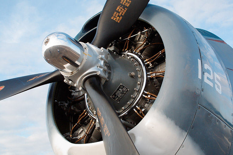Today's Action Photo is a picture of a propeller on an American World War II fighter plane, a P-47 Thunderbolt, I think, on display at the 2001 Wings Over Houston air show with me reflected in the silver nose cone! (wearing white shirt and jeans)