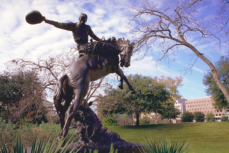 Today's Action Photo is a picture of an interesting sculpture of a cowboy on a horse on the grounds of the Texas State Capitol in Austin, Texas! Photo taken with a Canon Elan IIe camera 20-35mm f/3.5-4.5 lens, Fuji Velvia film.