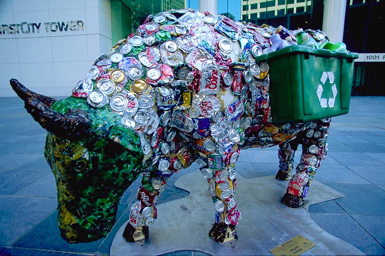 Today's Action Photo is a picture of a Houston Cow Parade cow named "Waste Moover" on display near downtown Houston, Texas! Artist: Kristen Oland. Patron: Waste Management. Photo taken with a Canon Elan IIe camera, Fuji Velvia film. 1/8 second at f/5.6.