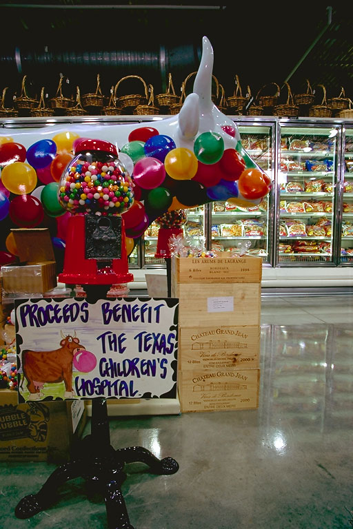 Today's Action Photo is a closeup picture of a Houston Cow Parade cow named "Gumball Machine" on display inside HEB Central Market in Houston, Texas! Artist: Dura Dittmar. Patron: HEB Grocery Company. Photo taken with a Canon Elan IIe camera, Fuji Velvia film.