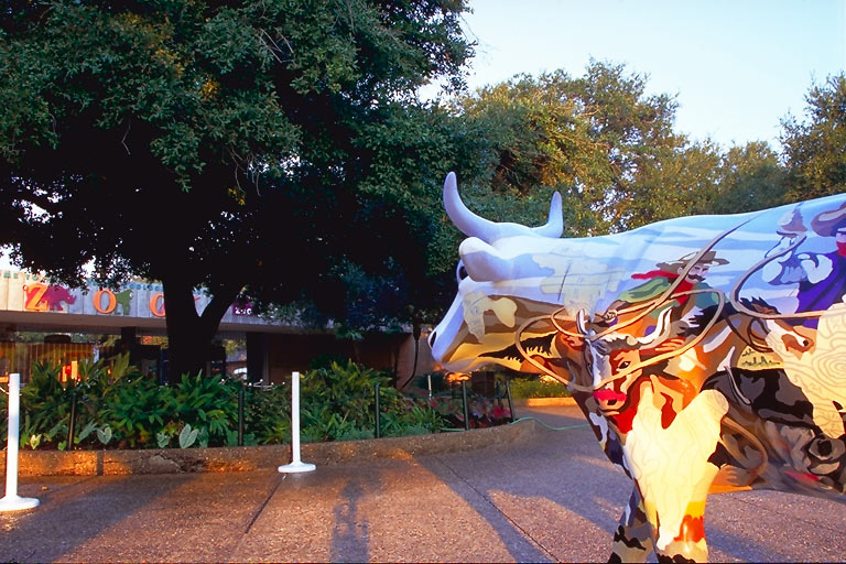 Today's Action Photo is a picture of a Houston Cow Parade cow named "Texas Landscape" on display outside the Houston Zoo in Houston, Texas! Artist: St. John's School - Dan Havel. Patron: Lane, Mary S, Margaret, Jim, Buck, John, Harry, Sam and Lucy. Photo taken with a Canon Elan IIe camera, 20-35mm f/3.5-4.5 lens, Fuji Velvia film.