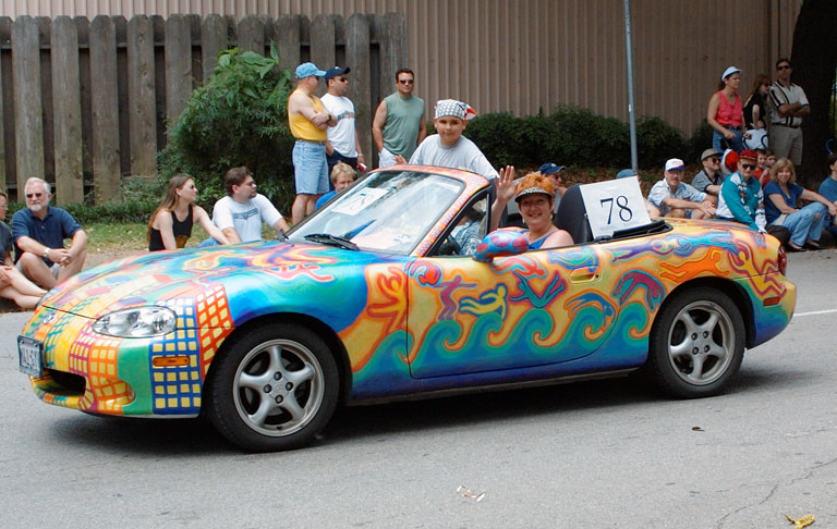 Today's Action Photo is a picture of Houston Art Car Parade entry #78, a Mazda Miata with an interesting colorful paint job!