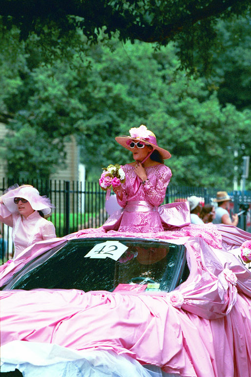 Today's Action Photo is a picture of Houston Art Car Parade entry #42, a bridal themed car with an entourage of bridesmaids! I think it was called "Cousin of the Bride".
