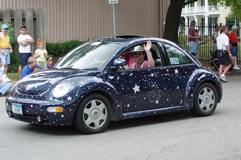 Today's Action Photo is a picture of a 2002 Houston Art Car parade entry named "Twink", it appears to be the new style Volkswagen Bug painted like a galaxy!