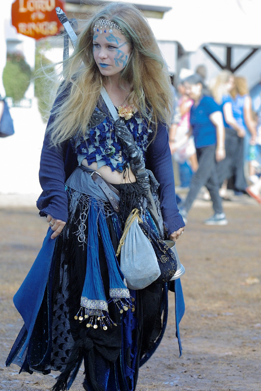 Today's Action Photo is a picture of Khaestrel, the blue dragon faery, looking serious as she strides through the grounds of the 2002 Texas Renaissance Festival!