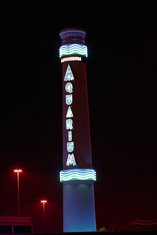 Today's Action Photo is a picture of the smokestack from the old Houston Waterworks lit up on Grand Opening night at the Downtown Aquarium restaurant in Houston, Texas!