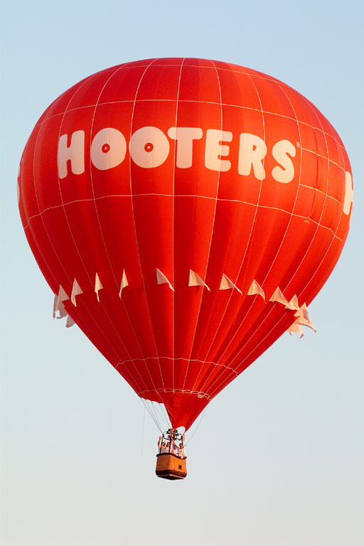 Today's Action Photo is a picture of the official Hooters balloon flying over the crowd at the 2003 Ballunar Festival in Clear Lake, Texas! There is one actual Hooters girl in the gondola if you look closely.