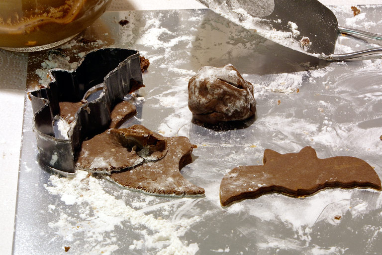Today's Action Photo is a picture of a gingerbread bat cookie, freshly cut from the dough during one of my practice sessions trying to learn the secret family gingerbread recipe!