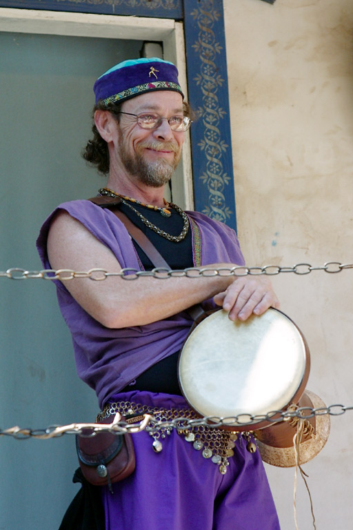 Today's Action Photo is a picture of the other drummer for the chain mail fashion show, who appears to be enjoying the festivities at the 2003 Texas Renaissance Festival!