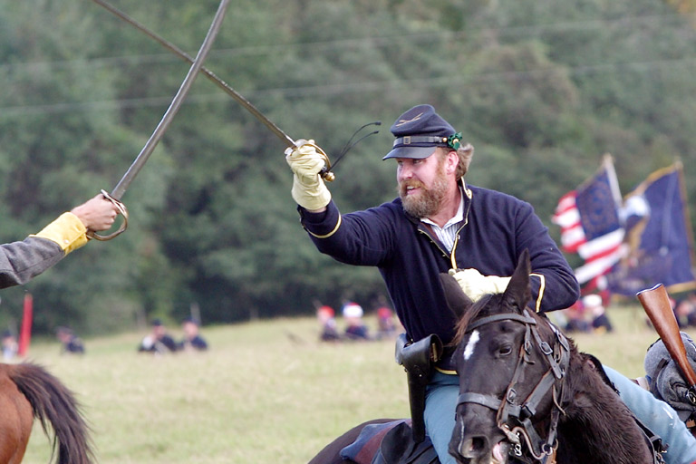 Today's Action Photo is a picture of a swordfight on horseback during a civil war battle re-enactment at Civil War Weekend at Liendo Plantation near Houston, Texas!